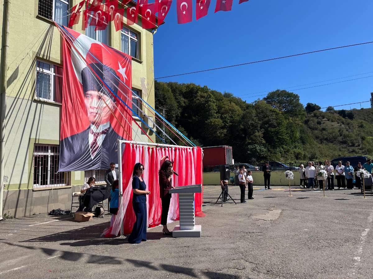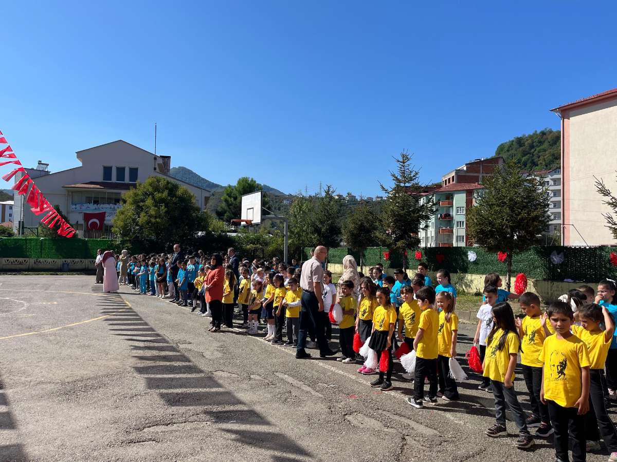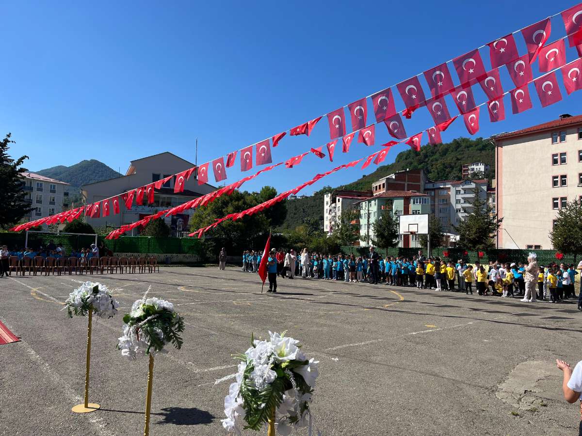 Tören, okul bahçesinde öğrenciler, öğretmenler, veliler ve davetlilerin katılımıyla yapıldı. Saygı duruşu ve İstiklal Marşı’nın okunmasıyla başlayan programda, Okul Müdürümüz Selda DÖNMEZ günün anlam ve önemini belirten bir konuşma yaptı.